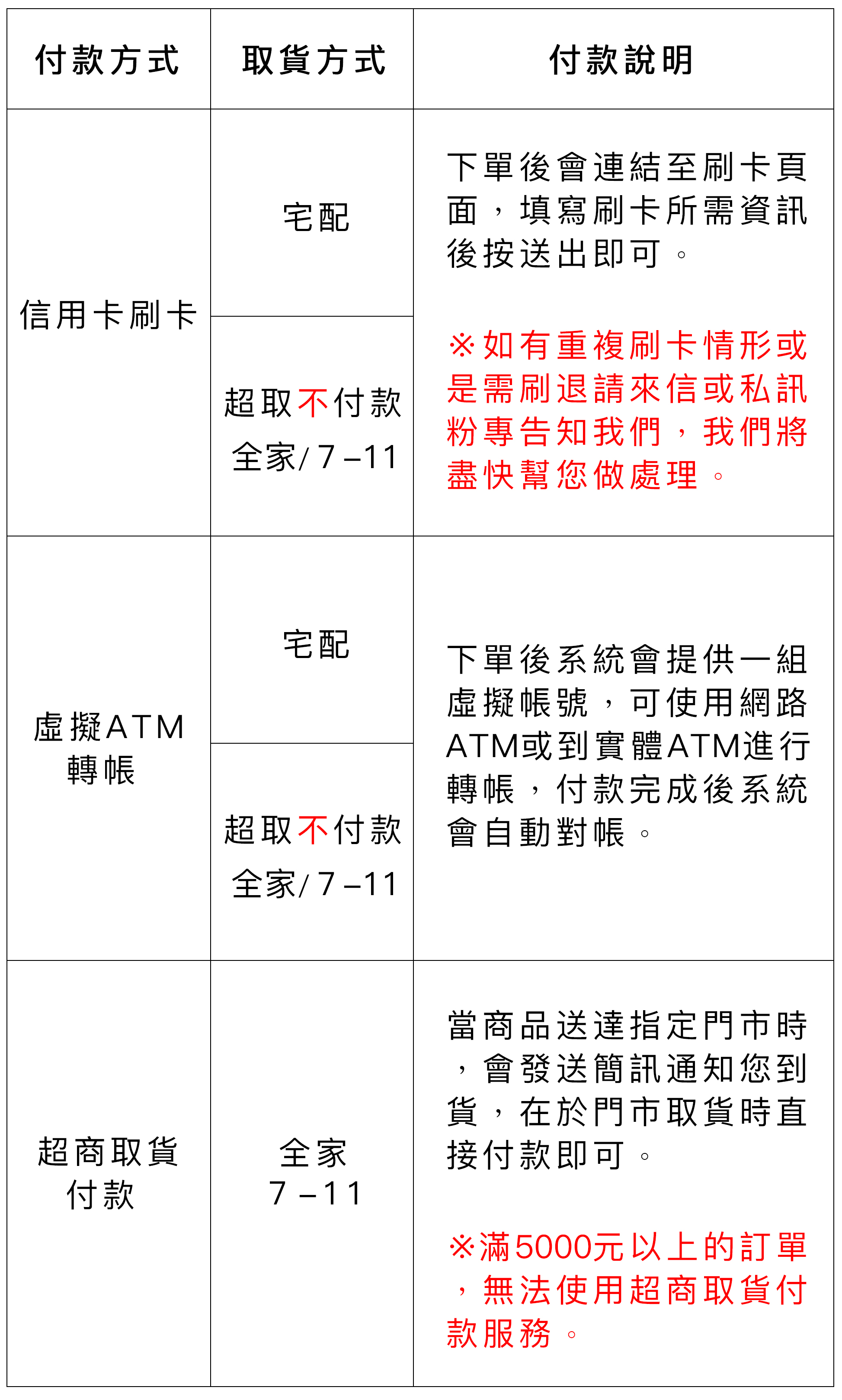 2.若訂單內含預購品與現貨,也需等待訂單內的預購品到齊再依照訂單順序陸續出貨,無法拆單先出現貨